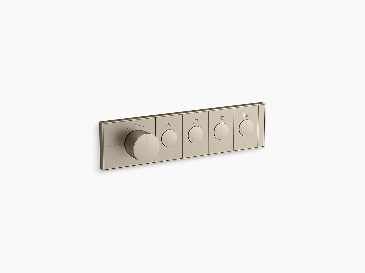 Recessed thermostatic mechanical 4 outlet trim in brushed bronze