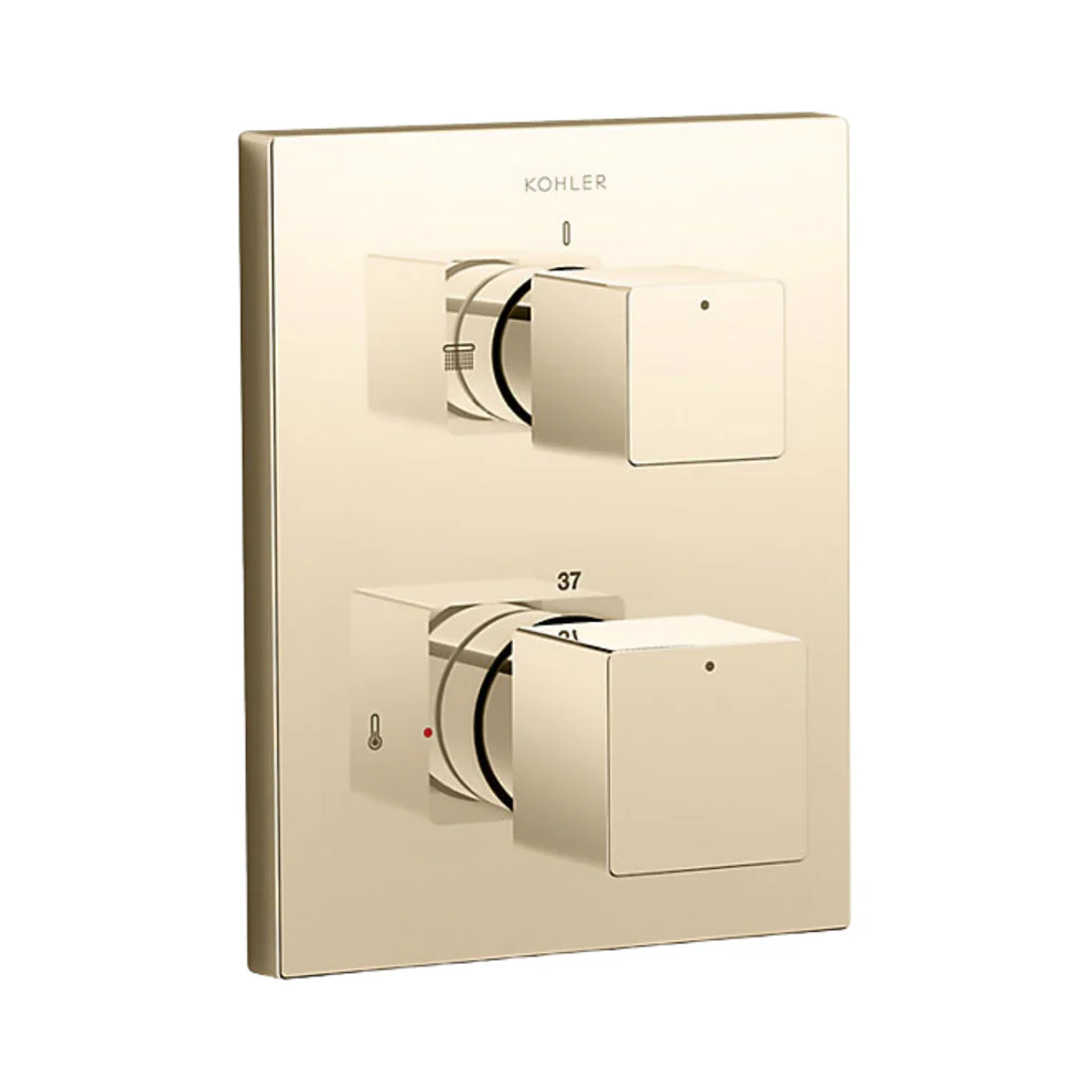 Geometric thermostatic recessed bath and shower square trim