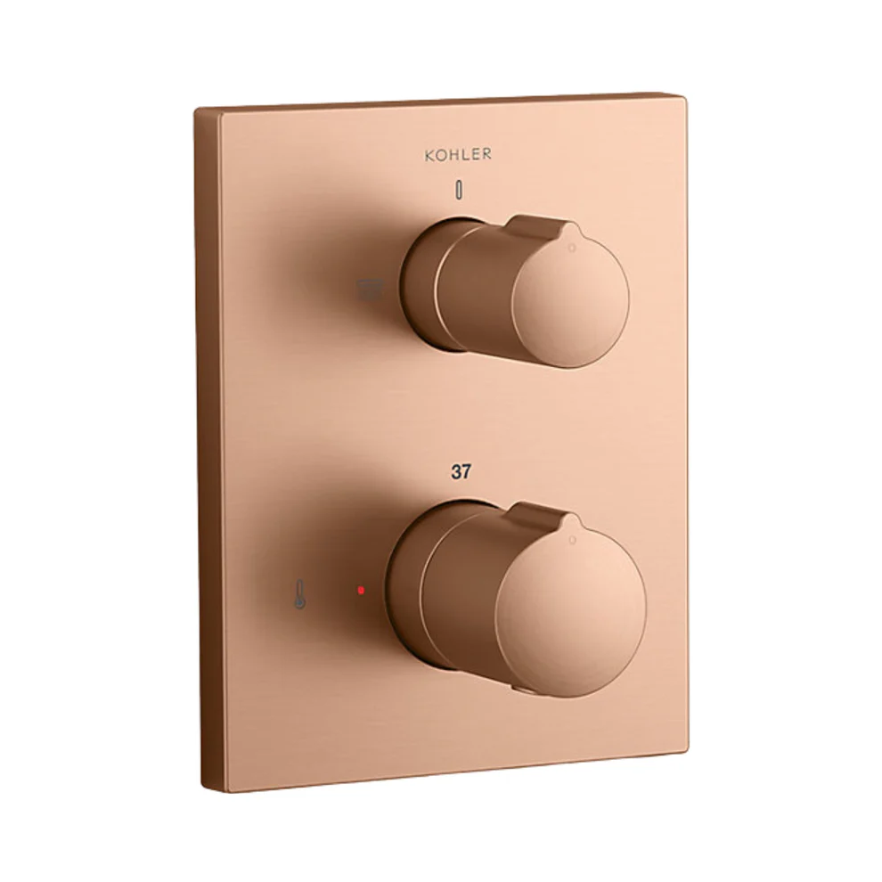 Thermostatic recessed bath and shower universal trim in brushed rose