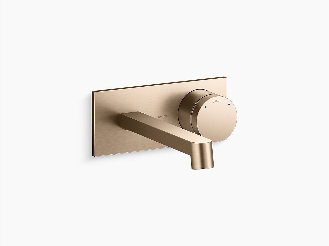 Wall mount single-control basin faucet trim with valve in brushed bronze