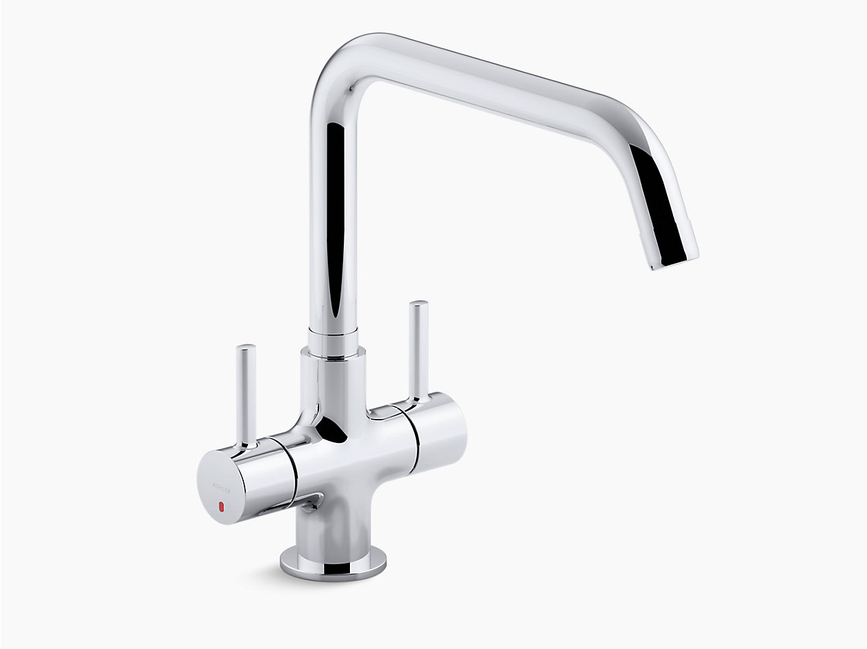 Two Lever handles offer separate control of hot and cold water