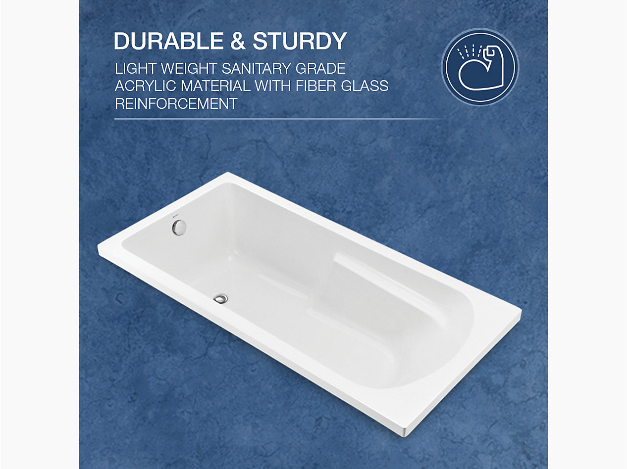 1670mm drop-in acrylic bathtub in white