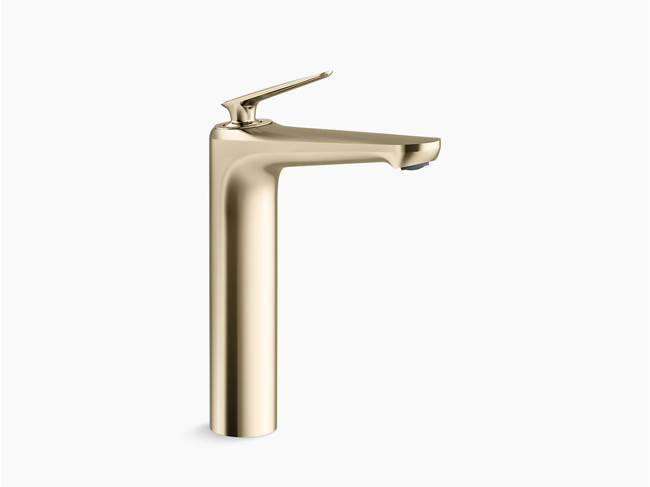 Single-control tall lav faucet without drain in french gold