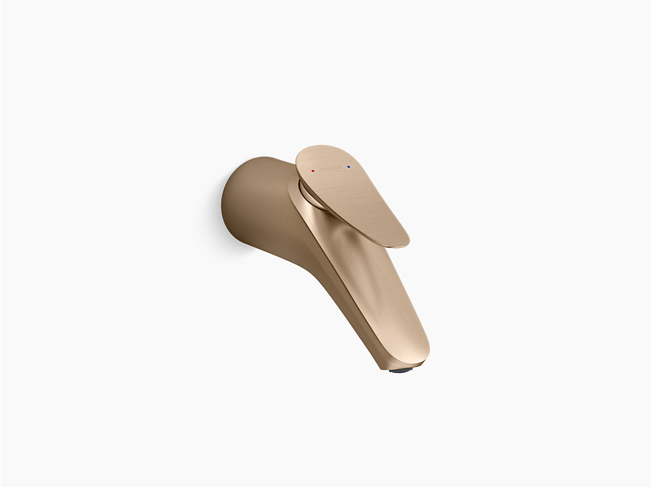 Single-control wall mount basin faucet trim + valve in brushed bronze