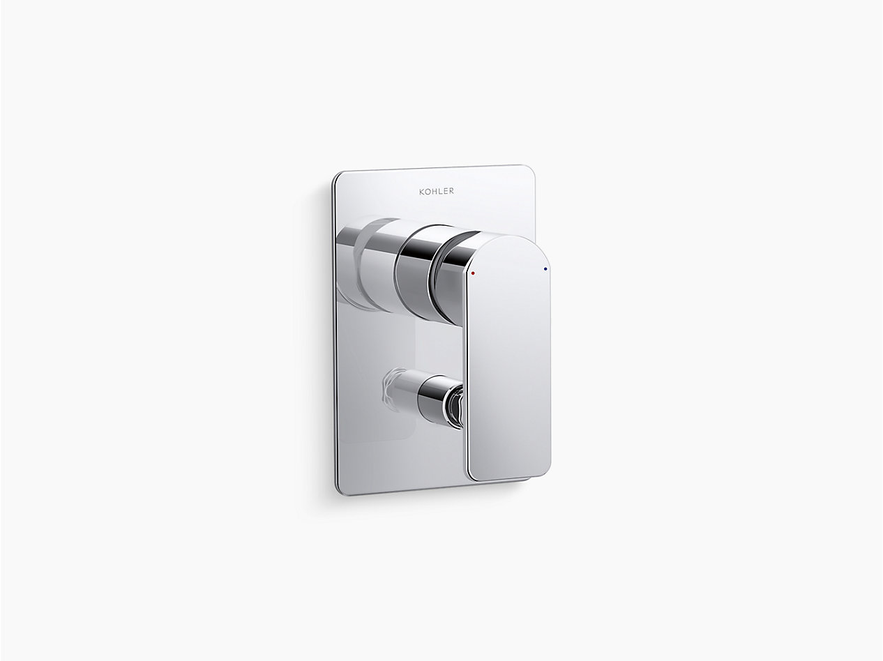 Recessed bath and shower trim with diverter in polished chrome
