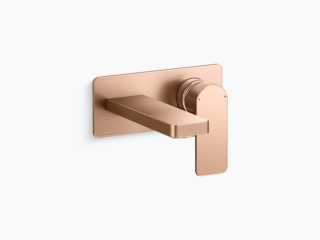 Parallel – Wall mount lavatory faucet trim + valve in brushed rose gold