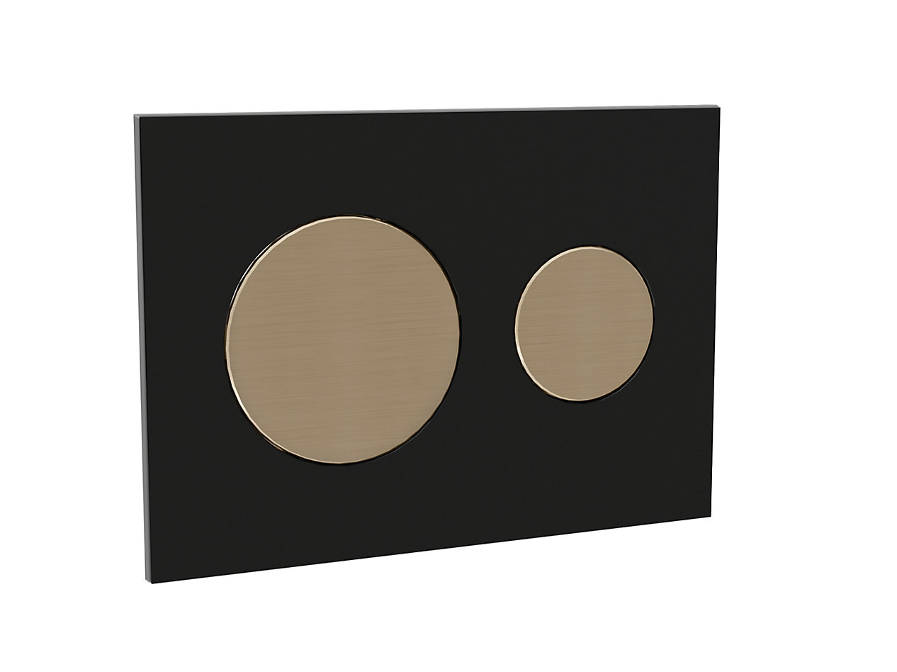 Pneumatic faceplate in black with actuation button in brushed bronze