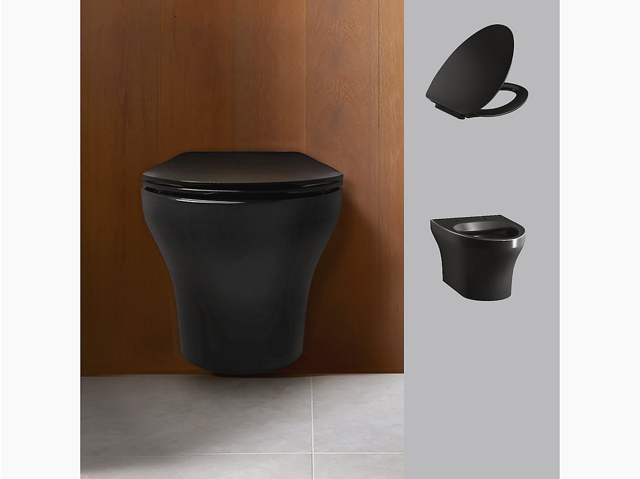 Wall hung toilet with Quiet-Close™ slim seat cover in black