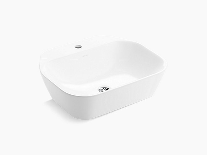 536mm square vessel with single faucet hole in white