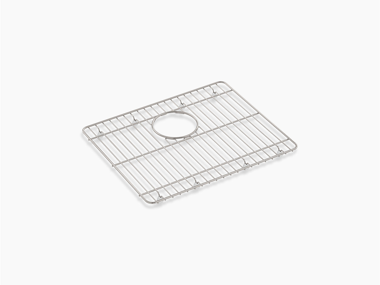 Ensure the long-lasting beauty and functionality of your sink with this premium stainless steel sink rack from KOHLER®. Expertly crafted to fit the Strive™ 21-inch (53.3 cm) single-bowl kitchen sink, this durable rack provides a protective barrier that helps to prevent scratches, dents, and daily wear on your sink’s surface. It also cushions delicate glassware and dishes, reducing the risk of chips and breakage during washing and drying. For ultimate versatility, the rack can also be used to rinse produce, act as a trivet for hot items, and more. Designed with convenience in mind, it features rubber feet for added stability and surface protection, and is easy to clean in the dishwasher. Elevate your kitchen’s efficiency and style with this essential accessory.